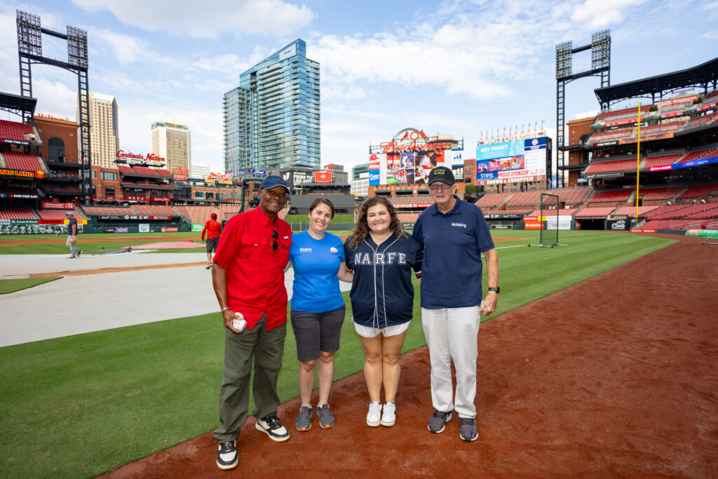 Ivana Sara, grassroots and legislative affairs manager, Matthew Sanderson, content manager, Jennifer Rafael, director communications and marketing and Johann De Castro, NARFE senior vice president of finance and administration attending the St. Louis Cardinals game
