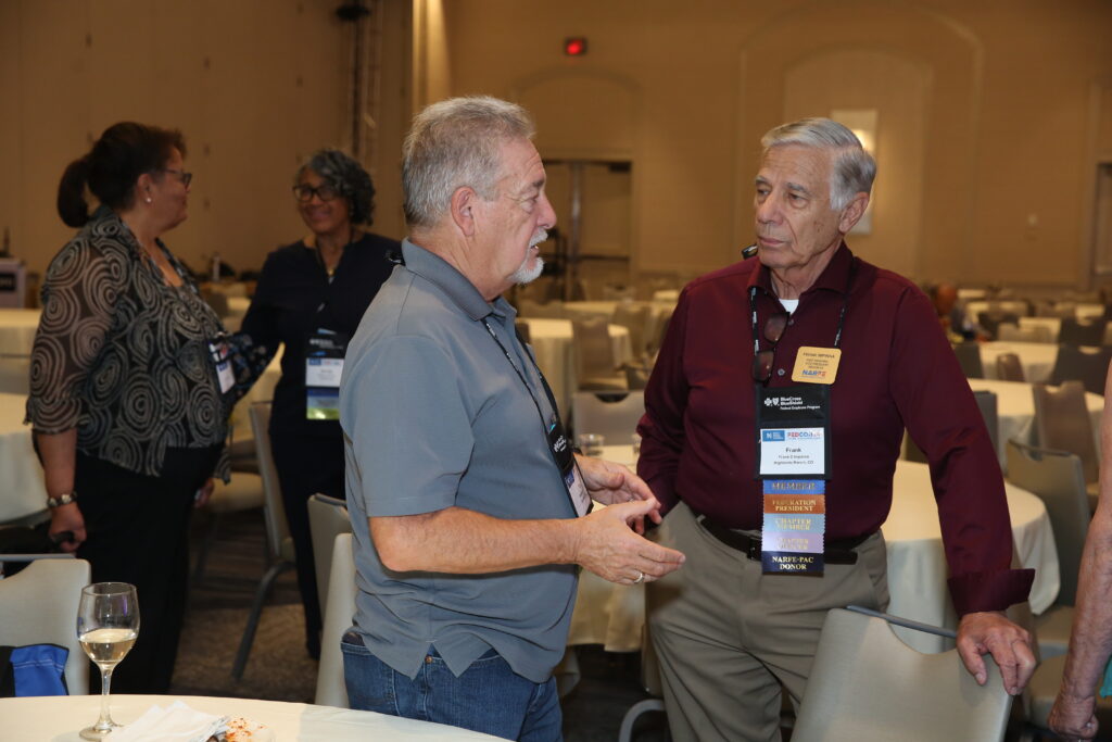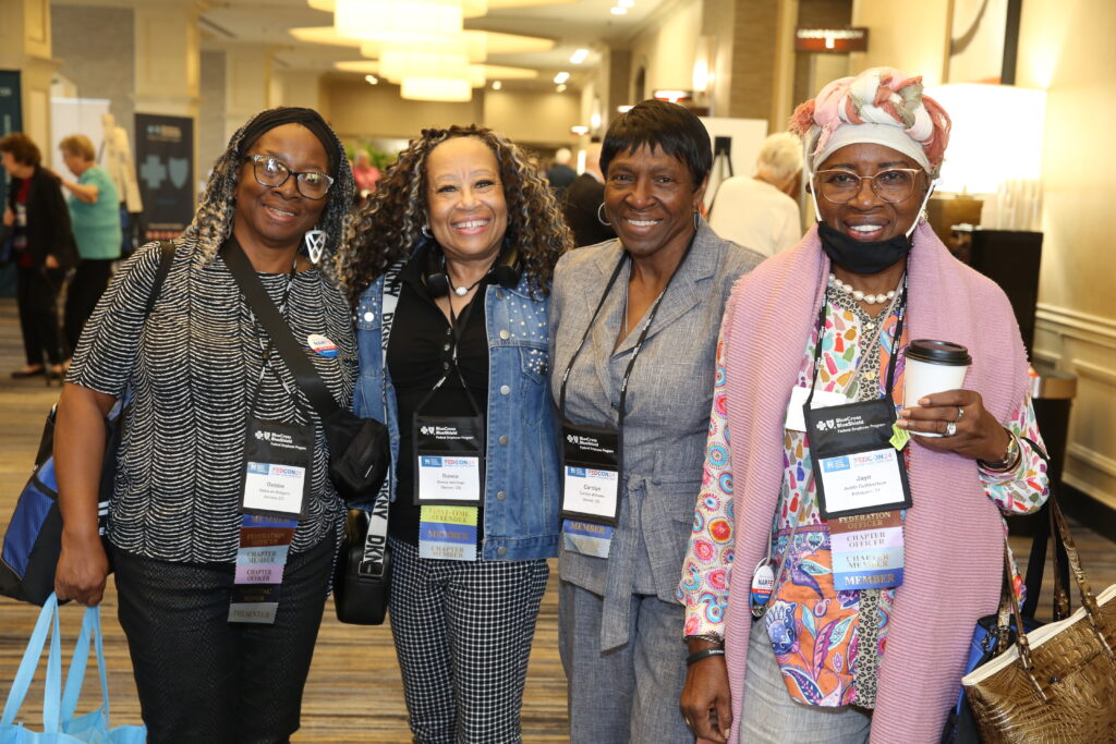 NARFE members Deborah Rodgers, Donna Jennings, Carolyn Williams and Judith Cuthbertson connect during a networking break between sessions at FEDcon24. It’s always great to see our members catching up and having a great time.
